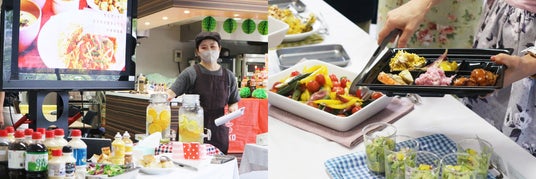 (左)講師を務めた当社開発部 メニュー企画の従業員/(右)“野菜がメイン”の料理バイキングをお楽しみいただきました