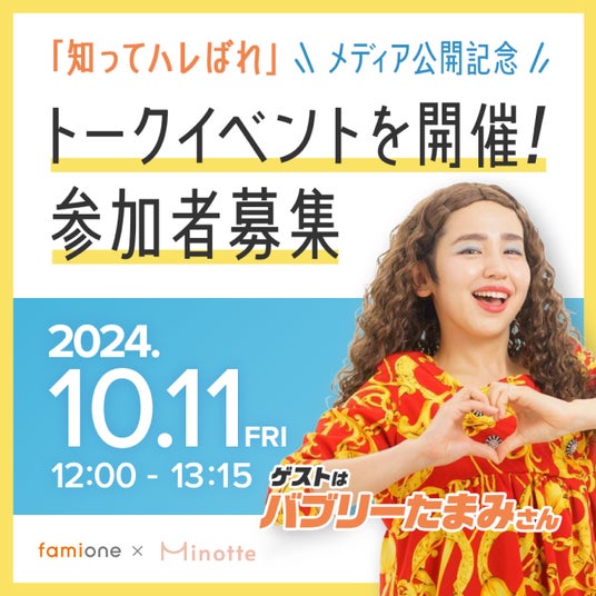 またメディアのオープンを記念して、10月11日には女性を応援する等身大のメッセージをSNS中心に発信しているママ界のエンターテイナー、バブリーたまみさんをお迎えし、オンラインでの無料イベントを開催いたします。視聴者への抽選でのプレゼント等を企画しておりますので、ぜひご参加ください。