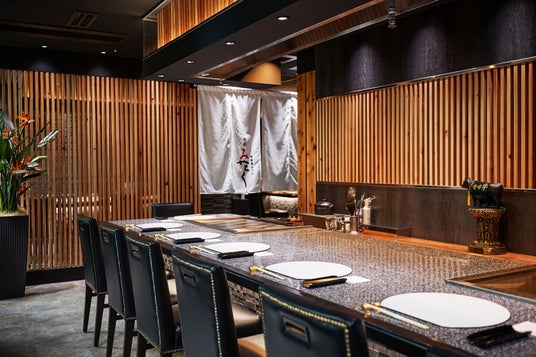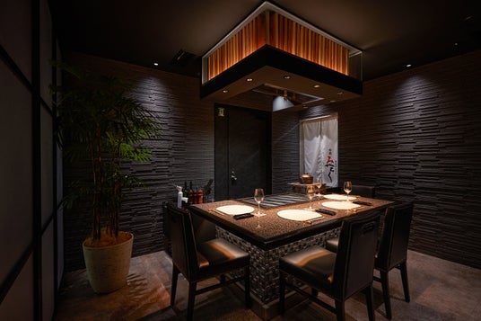 飫肥杉をふんだんに使用し、鬼の洗濯板や高千穂峡など宮崎の大自然と神話の里をイメージした和モダンな店内で宮崎牛を肉割烹や鉄板焼で。洗練された技と心からのおもてなしを添えてご提供いたします。和モダンな店内は、大人の雰囲気で落ち着いてお食事していただける空間となっております。どうぞゆったりとした至福のひとときを、心ゆくまでお楽しみください。