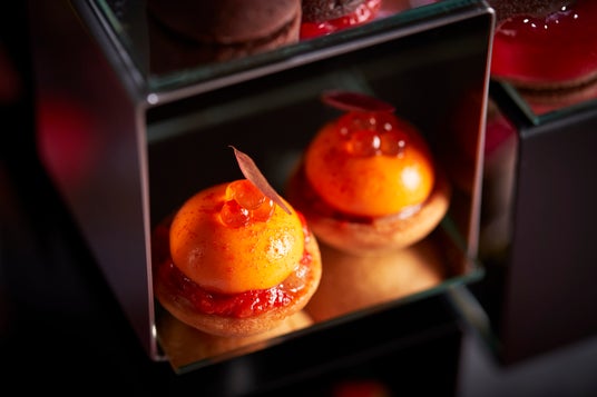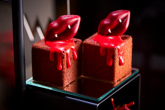 ドラキュラの唇から真っ赤な血がしたたり落ちる「ラズベリーチョコレートムース」や、コウモリがのった「無花果ジュレ フロマージュムース」、トップにフレッシュなベリーを潰した赤いソースをかけた「オレンジカルダモンパンナコッタ 赤い果実ソース」のほか、赤いバンズで赤キャベツを挟んだ「レッドバンズのミニハンバーガー 赤キャベツのマリネ」など、真っ赤なスイーツとセイヴォリーで、大人可愛いハロウィンアフタヌーンティーに仕上げました。