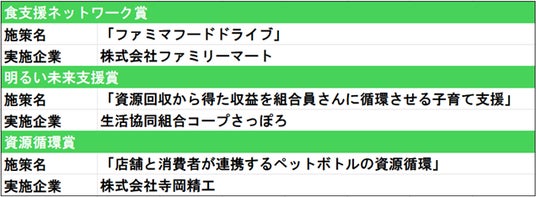 サステナビリティを実現する食品小売企業の施策を募集し、集まった施策の中から専門家陣の選定によって受賞施策を決定し表彰する企画。2022年よりスタートし開催は今年で3回目。今年は11組織から14の施策が集まり、その中から下記の3つの賞を決定した。