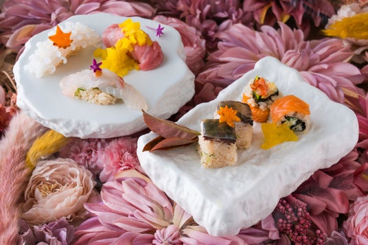 季節毎にメニューを変えてお届けする人気のアフタヌーンティー風ランチ「花蓮」では、木々が錦のように色鮮やかになる季節をテーマに、サバや銀杏、栗などの季節の食材をふんだんに使用した期間限定メニューをご用意致します。前菜3種、土瓶蒸し、握り寿司5種、カクテル寿司、料理長 萩原和隆の出身地 長崎県島原の伝統スイーツ「かんざらし」を含むともづな特製のスイーツ5種、選べる和菓子1種をご賞味いただけます。ランチ「花蓮」ならではの華やかで独創的な寿司と、ともづな手作りのスイーツ両方を美しいプレゼンテーションとともに楽しめる贅沢なランチです。