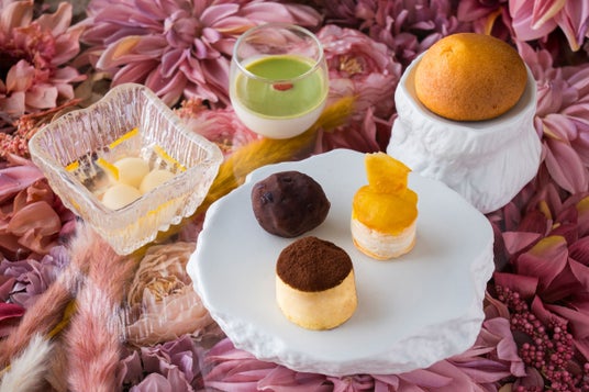 デザートは、料理長自らが考案した「和ティラミス」、長崎県島原の伝統スイーツかんざらしを柑橘の爽やかな香りが漂う柚子風味にアレンジした「柚子の香りのかんざらし」、アーモンドの香りと旨味を閉じ込めたブラマンジェと、濃厚な抹茶のソースのマリアージュが楽しめる「抹茶ブラマンジェ」、秋を代表する和菓子のひとつ「お萩」に加えて、お好きな季節の和菓子をおひとつお選びいただけます。