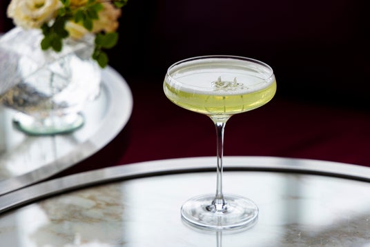 「シャンパンアレキサンダー」(3,400円)新緑をテーマにした作品から着想を得た淡い緑のカクテルは、「レミーマルタン1738アコード・ロワイヤル」をベースに柔らかい味わいに調合されたアレキサンダーに、シャンパーニュ「テルモン」やミントを加えてさっぱりとした味わいに。