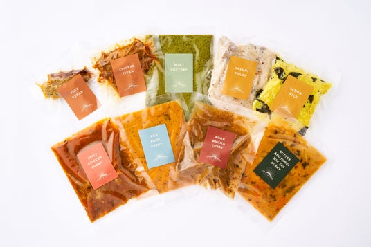 ■「ACHA YATRAセット」 価格:8,250円(税込)送料無料季節ごとに変わるカレー、ご飯、ケバブ、チャツネの大満足セット。立山のジビエや野菜をつかった カレー4袋、ビリヤニやプラウなど ご飯もの2袋、ケバブやティッカなど 焼きもの2袋、インド料理にはかかせない チャツネ1袋