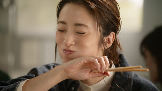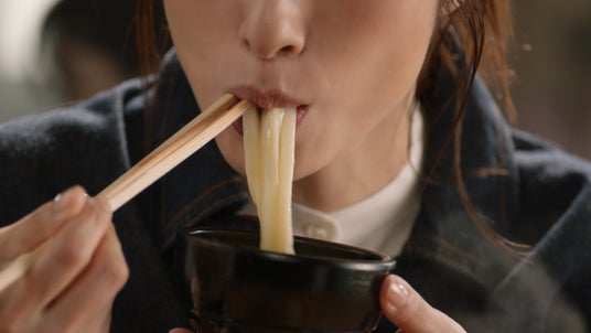最後に、上戸さんが口いっぱいにうどんを頬張り、おいしさを噛みしめている様子で本TVCMは締めくくります。