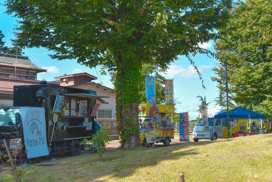 更上閣にぎわい広場に並ぶキッチンカー(昨年度)