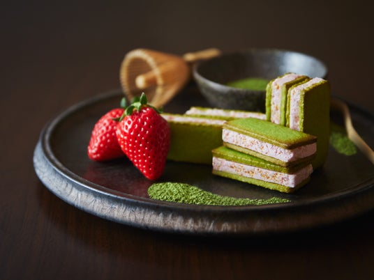 抹茶のほろ苦さといちごの華やかな香りがざくざくとした食感とともに口いっぱいに広がります。