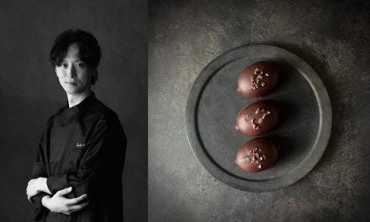 この秋、実店舗をオープン予定の<sarkara>は自由が丘の名店<モンサンクレール>、銀座<ル ショコラ ド アッシュ>にて研鑽を積んだ大井シェフのブランド。今回はショコラブランドでの経験を活かし、廃棄されがちなカカオハスク(カカオ豆の外皮)の香りを活かしたガトーバスクをご用意。チョコレートやココアパウダーを使わず、カカオのおいしさに開眼する一品です。