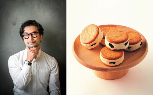 名店<クリオロ>やジャカルタの高級パティスリーで経験を積んだ畠山シェフが2021年秋に調布市にオープンした焼菓子が評判のパティスリー<feuquiage>。「国産レーズンのバターサンド」は山梨県産の巨峰を赤ワインとスパイスで軽く煮て味と香りをしっとりと含ませた乳味のあるクリームを、フランス製発酵バターのサブレでサンドしています。