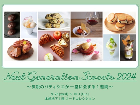 伊勢丹新宿店 本館地下1階 フードコレクションでは、毎週、今話題のアイテムや全国のおいしいものを一堂に集めた、食のイベントを開催しております。9月25日(水)~10月1日(火)期間は、今注目されている次世代のパティシエ達が考案した伊勢丹新宿店限定・先行販売の焼き菓子やデセール、パフェなどのスイーツを集結した、「Next Generation "Sweets" 2024」を開催いたします。第2回となる今回は、全10社中8ブランドが、本イベントに初出店。また出店ブランド全てが実演販売を行い、みなさまに焼き立て・出来立てのスイーツをお届けいたします。会場内にはイートインスペースを設け、テイクアウト用の焼き菓子・生菓子も販売していますので、会場でもご自宅でも存分に次世代パティシエ達のスイーツをお楽しみいただけます。
