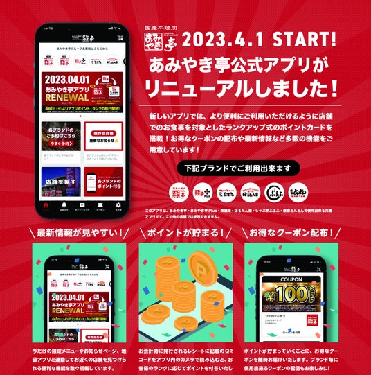 ブランド:あみやき亭/あみやき亭Plus/感激どんどん/ほるたん屋/かるび家/焼肉スエヒロ館/レストランスエヒロ館/ブラックホール/ホルモン青木/杉江商事/ニュールック/美濃路/みの路/感動の肉と米/楽市/すしまみれ/ダイニング/イタリアンレストラン/ふふふ/直売市/百名山/喜楽