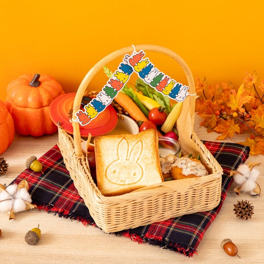 サーモンフライサンドイッチと秋の野菜や果物をバスケットに詰め合わせた「ミッフィーと秋の