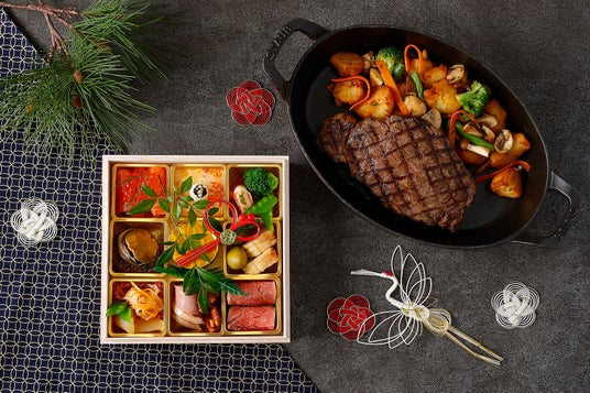 「ホテル特選おせち和洋二段重」は、壱ノ重に和のアレンジをした伊勢海老の味噌マヨネーズ和えや黒豆、伊達巻きなどの定番のおせち料理14品を詰め合わせ、弐ノ重にはローストビーフ、鴨のパテ、チキンロール、オリーブ、鮑のやわらか煮、フォアグラテリーヌ、キャビア、ホタテ貝柱のエスカベーシュなどの洋食を12品を揃えました。「ホテル特選フレンチおせちセット」は、数の子、鯛、イクラ、栗などの縁起の良い食材を使ったお料理や高級食材のキャビア、フォアグラ、ズワイ蟹など17品を二段重に詰め合わせました。さらに、そのままお召し上がりいただける温かいお料理として、国産の伊勢海老をアレンジした濃厚な旨味を味わえるグラタンと国産牛フィレ肉にフォアグラをのせたロッシーニを、デザートには金箔を纏ったヘーゼルナッツの風味が香ばしい滑らかなくちどけのチョコレートケーキをお付けし、初春を迎えるに相応しい彩り豊かな豪華なおせちセットをお届けいたします。また、「一人前プレミアムホテルおせち」は、定番の代表的なおせち料理を12品選りすぐり、一段のお重に詰め合わせ、季節野菜を添えた特選サーロインステーキとともにお楽しみいただけます。