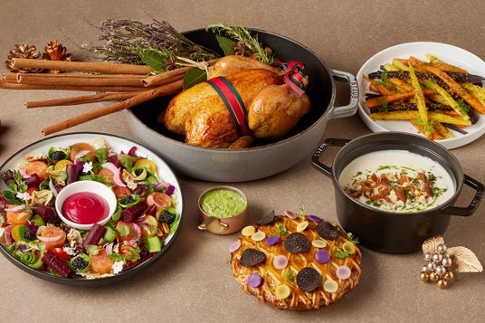 レストランでの食事に加え、家族や恋人、親しい友人たちと共にご自宅で祝うクリスマスは今や定番となりました。ザ・リッツ・カールトン東京では、本年も昨年に引き続き、各種「クリスマス テイクアウトメニュー」をご用意いたします。「名水赤鶏のオーブン焼き ハーブバターと共に」と「根セロリのポタージュスープ」のセットまたは、「国産牛ロースのオーブン焼き」と「マンハッタンスタイル シーフードチャウダー」のセットの2種類からお選びいただき、「三層仕立てのミートパイ 黒トリュフ」、「スモークサーモンとビーツのサラダ キャビア飾り」、「カラフル人参のグラッセ」と共にお愉しみいただけるクリスマス限定の豪華なパーティメニューをご自宅にてご堪能ください。