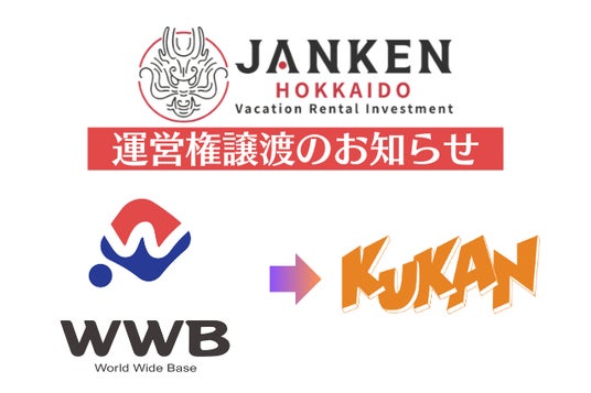 「世界中の人が、最適な体験を選択できる社会の創造」をミッションに掲げ、テクノロジーとデザインの力で「誰かにとっての、何かであり続ける。」北海道内でインバウンド領域に根差した事業を展開している「クウカン株式会社」(本社:札幌市、代表取締役:山本健太郎、以下:当社)は、株式会社ワールドワイドベースより、民泊投資家向けのサービス「JANKEN」の運営権を譲渡されたことをお知らせいたします。