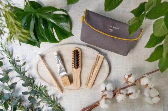 全国の西武プリンスホテルズ&リゾーツのホテルやオンラインショップで販売しているサステナブルな素材で作られたアメニティセットをお買い求めいただけます。オリジナルのポーチはインドのオーガニックコットンを使用、歯ブラシ、ヘアブラシ、コーム、ヘッドカバーは竹素材で作られており、歯ブラシのブラシ部分は食物由来のナイロン610が使用されています。