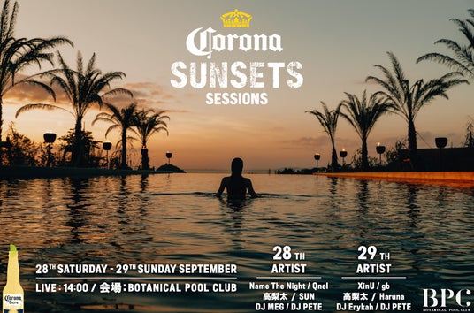 プレミアムビールブランド「コロナ エキストラ(以下コロナビール)」は、9月28日(土)・29日(日)の2日にわたり、夕陽に染まる美しい空のもとコロナビールを片手に大切な仲間や友人と、コロナビールと心地よい音楽を楽しむイベント、「CORONA SUNSETS SESSIONS」を千葉・内房にある“プールクラブ”がテーマの「BOTANICAL POOL CLUB(以下、BPC)」にて初開催いたします。