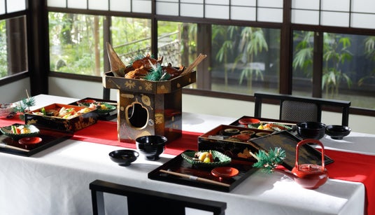 おせち料理と白味噌雑煮のご朝食---チェックアウト後、初詣・市内各指定駅まで送迎