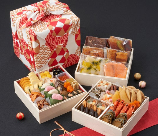 2025年のおせち料理は、定番の二段重をはじめ、ローストビーフや合鴨ロースなどが付いた豪華三段重、2名様におすすめの二段重など四種類ご用意いたしました。