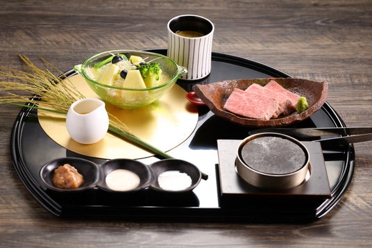 月見をイメージした強肴、メインの和牛サーロインステーキはお手元の焼き石でお好みの焼き加減でどうぞ。3種類の個性豊かなソース「イチジク味噌ソース」、「お月見オーロラソース」、「北海道タマネギ&マスタードソース」は、ステーキとの相性抜群です。