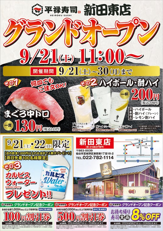 平禄寿司 仙台宮城野新田東店住所 宮城県仙台市宮城野区新田東1-18-2