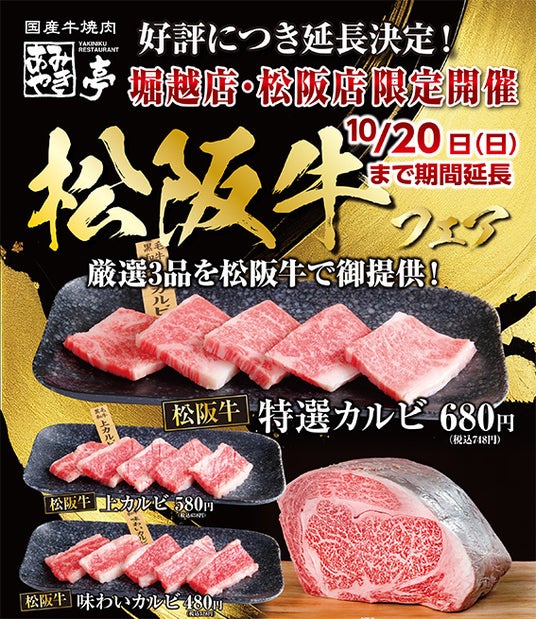 あみやき亭堀越店・松阪店 限定イベントとして開催している【松阪牛フェア】を