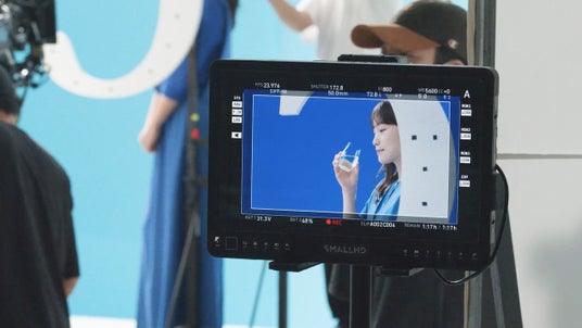 商品イメージのカラーにあわせた衣装で撮影場所に現れ、終始リラックスしながらも真摯に撮影に臨んでくださった川栄さん。撮影内容を真剣に聞きながら、商品名の「アルゴ」が分かりやすいと笑顔に。撮影の際には、商品の持ち方や出し方を何度も練習する姿も。「アルゴ」の味や特徴についても、より伝わるように少しずつ表現を変えて挑戦し、特にグラスを見つめる表情にこだわって撮影をしていました。
