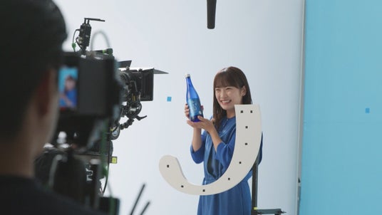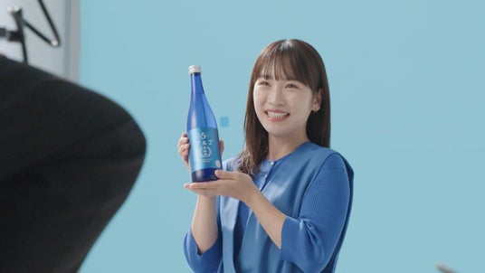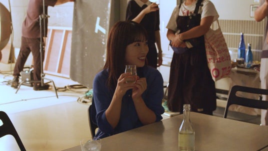 川栄さんは商品のイメージカラーである青を基調としたワンピースで登場。ALC.5%の“5”の文字から元気よく「じゃじゃーん」と新商品を発表するシーンから始まります。透明なグラスに注がれた新商品を飲むと、「おっ!すご!」とびっくりした表情でグラスを見つめます。ラストには「こんな、日本酒を待っていた。」という言葉とともに笑顔で「アルゴ」と商品名を語りかけます。