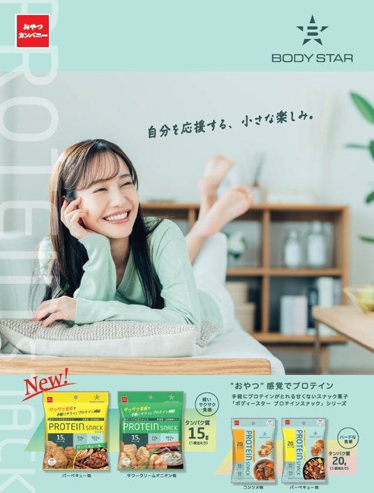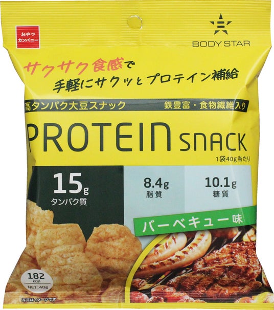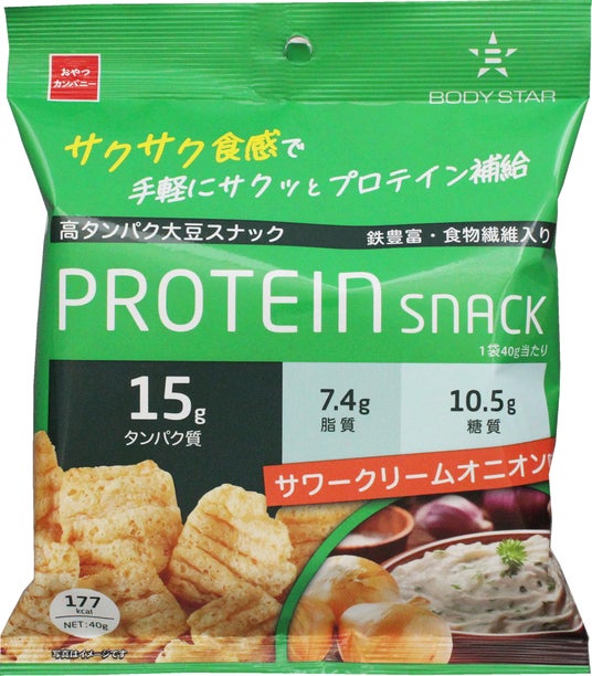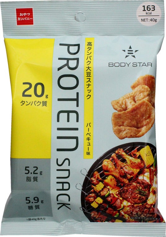 ユニークで美味しい“おやつ”を提供し続けてきたおやつカンパニーのスナック菓子製造ノウハウを活かし、楽しみながらも手軽に栄養補給ができる新ブランド『BODY STAR』として「タンパク質」に着目した商品を展開。おやつ感覚ながら“数値で語れる”量の提供をコンセプトに展開する『BODY STAR プロテインスナック』は、大豆を使った生地をスナック菓子らしい味付けで仕上げることで、1袋あたりタンパク質20g・食物繊維4gの効率的な摂取とスナック菓子らしい美味しさの両立を実現。カリカリッとしたハードな食感としっかりとした味付けで、無理なく美味しく楽しみながらカラダメンテができる、これまでにない商品として2021年3月に登場しました。