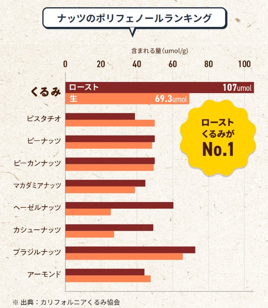 1. ローストしたくるみは抗酸化値が1.5倍になります!