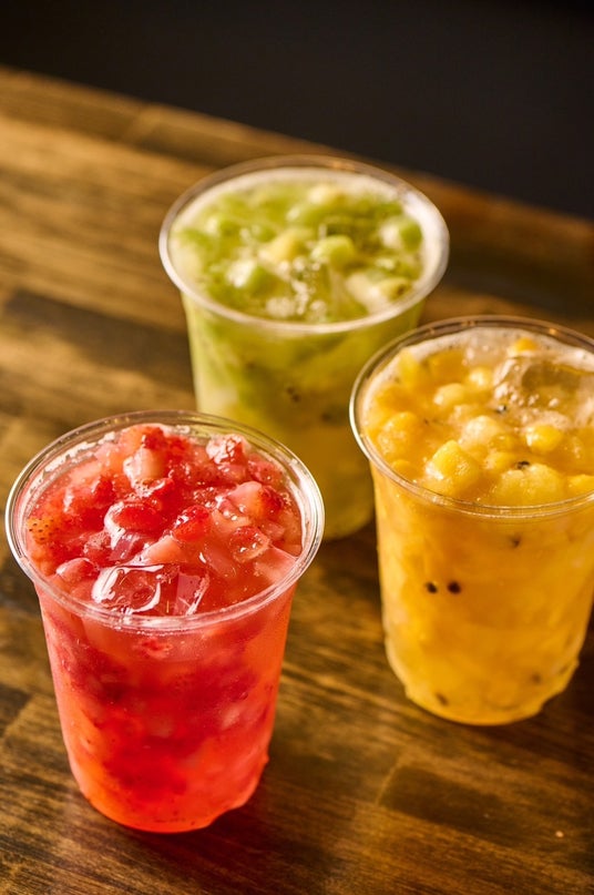 新食感!果実ゴロゴロ&ナタデココ フルーツティー 各530円(税込)