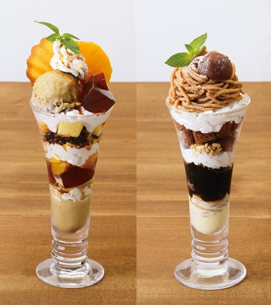左:和紅茶のパフェ 右:和栗のモンブランパフェ