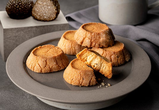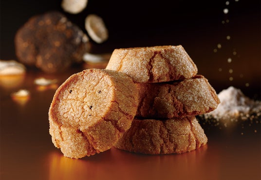 第1弾は、世界の料理人が愛する高級食材「トリュフ」。窯の熱でバターが溢れとろける独自の「バターなだれとろけ製法」で香ばしく焼き上げたバターリッチクッキーに、ヨーロッパ産トリュフ粒・黒トリュフ塩・トリュフオイルを合わせました。トリュフの芳醇な香りと、相性抜群のパルメザンチーズを隠し味にした上品な味わい。お酒と一緒に楽しみたい、リッチな味わいが自慢です。