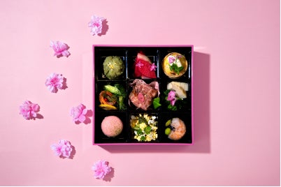 実施内容:「MoriZakura もり桜・一輪花」をイメージした店舗装飾、オリジナルメニュー提供(コースのみ※完全予約制)、ノベルティ配布、商品販売サイトのご案内