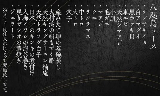 ◎八咫烏コース 通常26,800円(13貫、料理8品)