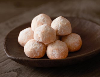十日町産魚沼コシヒカリの米粉100%を使ったスノーボール(クッキー)です。まぶした粉砂糖の優しい甘さや、米粉ならではのさくさくとした食感とほろほろとした口どけのよさが特徴です。