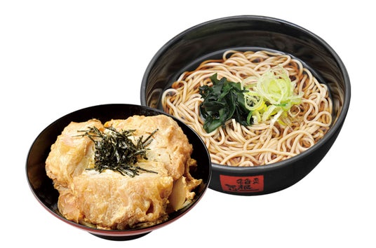 ボリュームのある鶏天を卵でとじた親子丼に、かけそばをセットにしました。食べ応えのある