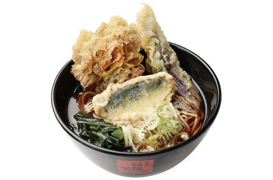 毎年ご好評いただいている“ホクトのマイタケ”を使用した舞茸天は、肉厚で食感がよく旨味もたっぷり。目鯵天と茄子天を合わせて、旬の味覚を詰め込んだ一杯に仕上げました。