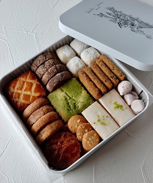 書籍の出版や洋菓子教室を主催するなど菓子研究家として活動する加藤里名氏のブランド。食感と素材にこだわった、フランス菓子をベースとした全10種類のクッキー缶は、年末までのご褒美として少しずつ楽しんでいただきたい一品です。