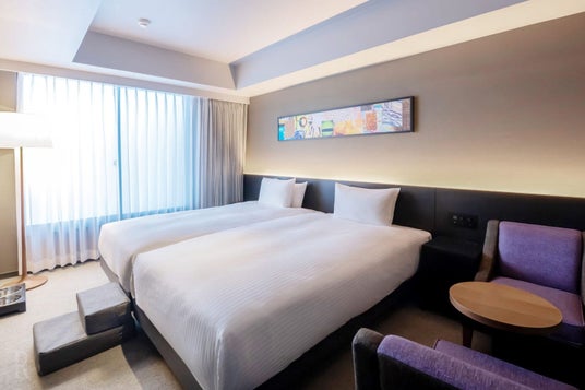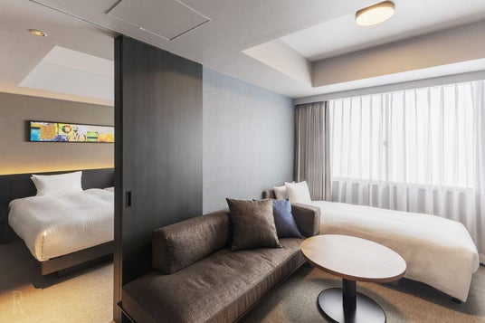 <2-5F>わんダフル グランドトリプル33-36m2の客室に、110cm幅のベッド2台を配し、ソファベッドを活用することで最大3名様までご宿泊いただけます。