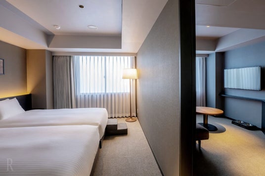 <2-5F>わんダフル グランドツインベッドルームとリビングエリアが独立した33-36m2のツインルームに、110cm幅のベッド2台を配しています。