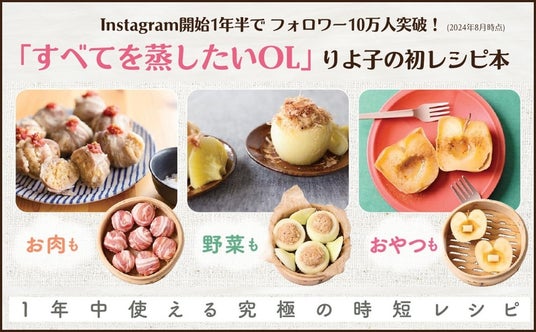 本書は、「せいろ蒸し」に特化したInstagram投稿が注目を集める、りよ子さんの初レシピ本。8月の予約開始のお知らせから話題を呼び、ネット書店のランキングは急上昇。注目の「せいろ蒸し」レシピ本がついに9月26日に発売します。