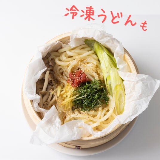 ▲電子レンジ感覚で冷凍うどんを蒸すと、本格的なもっちり感に。