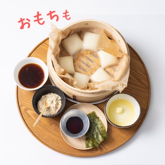 ▲おもちは、せいろで蒸すとまるでつきたてみたいでおいしい!