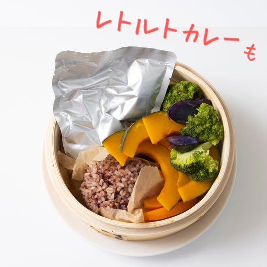 ▲野菜と冷凍ごはん、レトルトカレーをいっしょに蒸せば、おしゃれなカフェ風ワンプレートのできあがり。