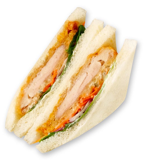 照焼チキン&たまごサンド照り焼きソースで味付けしたチキンステーキに自社製マヨネーズを使用したたまごサラダをあわせました。