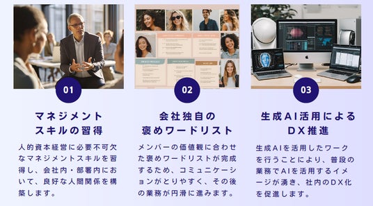 管理職の研修として注目される本プログラムは、職場における「褒める力」を育み、チームの結束力やパフォーマンスを最大化させることを目指しています。