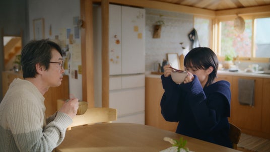 「子どもじゃないのよ、私もう。ポタージュの深みだってわかるんだから」というナレーションに合わせ、じゃがいも、たまねぎ、にんじんなどの6種類の野菜がとけ込んだポタージュをじっくりと味わう河合さん。その味がわかるようになった“お年ごろ”の河合さんはついつい「彼氏だって…」と声を漏らしてしまいます。すると一緒にスープを飲んでいたお父さんが「か、彼氏!?」と思わず驚きの声をあげます。お父さんのリアクションに、河合さんはスープマグで顔を覆って照れ隠し。ポタージュの奥深いコクを、大人の仲間入りをした表情で伝えます。