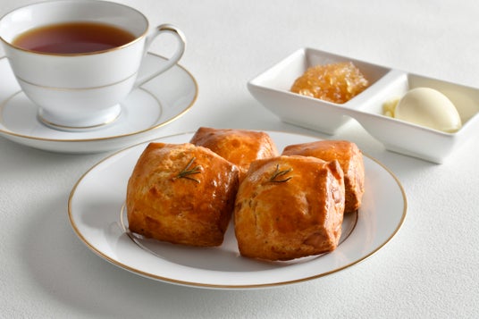アフタヌーンティーで提供をしているホテルメイドのスコーンを、ご自宅でもお楽しみいただけるよう販売をしております。スコーンは4個入り、季節によって限定フレーバーとプレーンの2種類入りでご用意します。香ばしいサクサク感と中のしっとりとした食感を、ご朝食やティータイムにぜひお楽しみください。